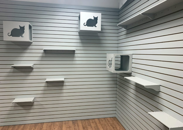 These sleek boxes, tubes and shelves are interchangeable, helping you create a place that is fun for cats and humans alike! These fun cat spaces come in a track mount option which allows you to configure them multiple ways to keep cats’ interest day after day.